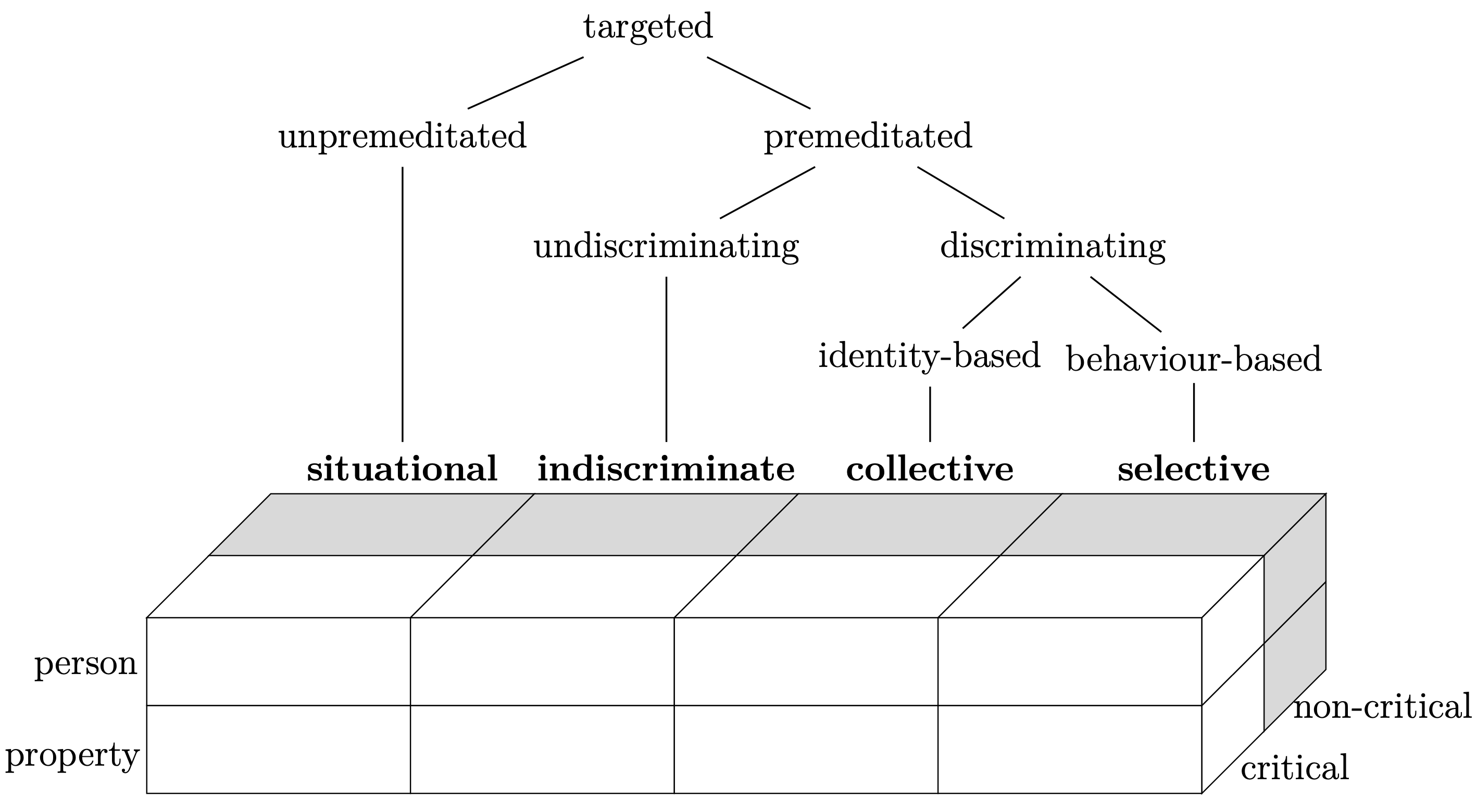 Fundamental to research on political violence is a conceptual framework to identify and trace patterns of violence. The dimension of targeting has received considerable attention as research investigating these patterns have incorporated observations about the intention behind attacks. We contribute to this research agenda by proposing a taxonomy of targeting, which can be applied in political violence cases, from the typically high-intensity violence of civil war to the usually low-intensity violence of militant social movements. We position this targeting taxonomy in relation to the broader conceptual property space comprising patterns of political violence. To test the utility of our conceptual framework, we applied it to coding novel data on far-right political violence in Italy from 2013 to 2020. Our results reveal the trends of sustained political violence within a stable democracy like Italy. It is worth noting that Italy has less political stability than other European countries, most visible in the relatively frequent change of government. Nevertheless, its democratic system is stable: violent groups and individuals act violently, but target more situationally and collectively, less indiscriminately; the violence itself is typically non-critical; and, characteristic of far-right violence, it is directed more often against people than property. Our findings speak to the role of politically violent organisations within stable democracies, where violence is less intense than amid armed conflicts but nevertheless a menace to some social groups.